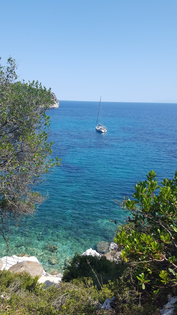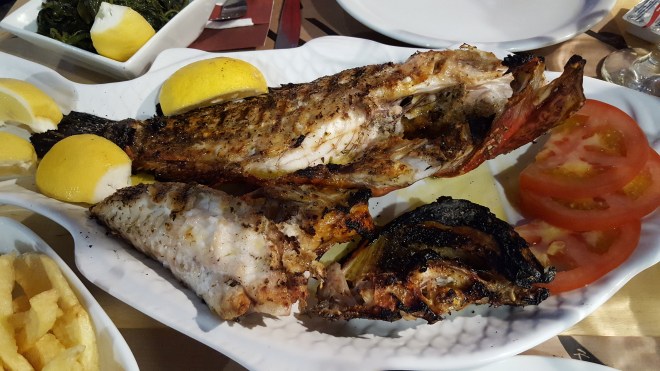 We gaan een restaurantje doen in de haven van Patitiri. Het is hier gezellig druk, de sfeervol verlichte terrassen zit vol, gelukkig vinden we nog een tafel vrij. We eten verse vis en maken plannen voor devolgende dag. Die avond slaap ik zalig aan één stuk door.