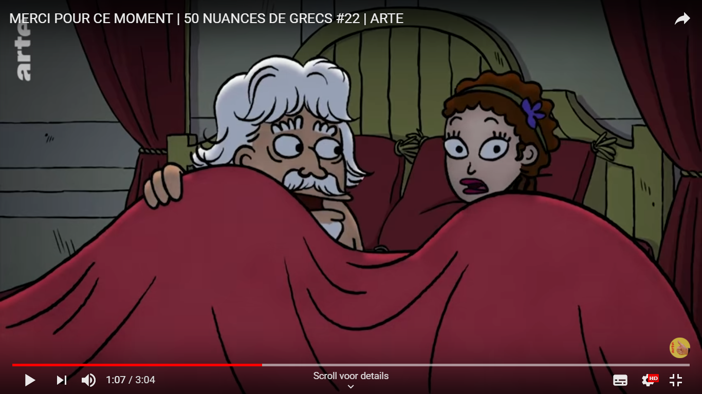De tentoonstelling eindigt met een meer ludieke vraag: kan er ook met Homeros gelachen worden? Het antwoord is een brede glimlach bij het zien van enkele ironische prenten. En wil je echt iets grappigs zien, kijk dan eens naar dit filmpje van ’50 Nuances de Grecs’: https://www.youtube.com/watch?v=xsms6UuB2-o