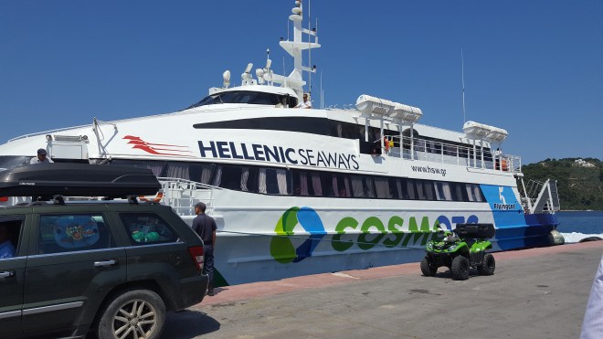 Het is ochtend in de haven van Volos. De zon schijnt. Vandaag nemen we de boot naar het eiland Skiathos dat ten noorden van Athene in de Egeïsche Zee ligt. De ijzeren laadklep klapt open en schuift over de kade, waarna de bemanning van het schip de koorden losmaakt om voetgangers en auto’s binnen te laten. We laten onze bagage achter in het ruim en gaan zitten op een van de witte banken op het dek. Even later klinkt een vrouwenstem door de luidsprekers. Ze geeft ons enkele veiligheidswaarschuwingen, eerst in het Grieks dan in het Engels.