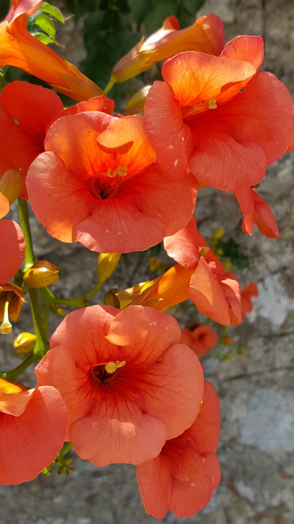 Na de late lunch rijden we met de auto toch de oude stad in, Konstantina heeft ons een route uitgelegd zodanig dat we niet heel ver met de koffers moeten sjouwen. We kunnen uitladen en rechtsomkeert maken want er is geen plaats om de auto te parkeren. Het is nog steeds stil in het dorp. We gaan even zitten op het balkon, laten onze blik dwalen over het landschap, doen niets. Onder mij hoor ik gerommel. Ik buig over de reling. Een kat is op de rode dakpannen gekropen van het afdakje eronder. Er is nog steeds geen mens te bespeuren. Ik ga douchen. Wanneer ik terugkeer naar het balkon om mijn handdoek uit te hangen en te laten drogen in de wind, is de hemel roze gekleurd. Het mooie Griekse avondlicht, wanneer de zon bijna ondergaat in zee en haar laatste stralen werpt voor het nacht wordt. Alles wordt zacht ’s avonds, het licht, de hitte, de geur van vijgen en jasmijn. Ook de cicaden zijn opgehouden met zingen. Het is het moment waarop het dorp terug tot leven komt en de stilte wordt geruild voor de bruisende gesprekken van de Grieken die nu naar buiten komen.
